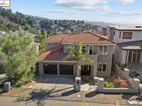 Claremont Hills modern Mediterranean w/ extraordinary architectural design. This home has it all from the finest of finishes, thoughtful enhancements & a designer's eye for detail w/ soaring ceilings & hardwood flooring throughout. This home offers warmth & comfortable spaces to relax in, 4 BR & 3.5 baths w/ breathtaking bay & canyon views from within the home & several balconies. Enter into the main entrance into an open LR, half bath & FR leading to the formal dining area down to a stunning Chefs kitchen w/ SS appliances, office & breakfast area all open to a deck overlooking serene canyon & Bay views. Upper level has 3 generous BR, w/ a sumptuous master suite leading to a private deck w/ stunning views, walk-in closet & a spa like master bath w/ walk-in shower & dual vanity sinks, plus full bath, laundry. Lower level, has the 2nd huge master suite w/ sliding doors leading to the backyard.The bonus basement is the perfect place for entertainment to gather for movies & conversation.