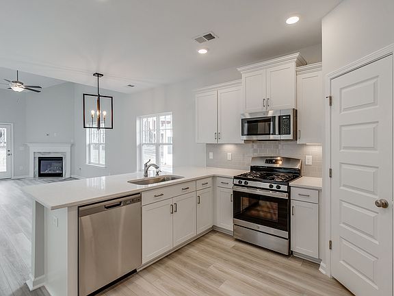 The two-story Townsend plan has four bedrooms and two and one-half baths. The well-organized kitchen with beautiful Flat panel shaker white cabinets, Fresh Linen quartz, glossy gray tile backsplash and a gas stove has a corner pantry and a flat breakfast bar that overlooks the dining area and great room. The primary suite has been extended and opens up the bath with separate shower and garden tub. The primary suite is located downstairs and overlooks the backyard. Upstairs features three additional bedrooms, two with walk-in closets and a hall bath. Options for this home include a fireplace or vaulted ceiling in the great room, hardwood staircase and luxurious vinyl plank flooring. Move-in ready! Up to $3500 in closing costs with the use of our preferred lender and closing attorney (MGC)