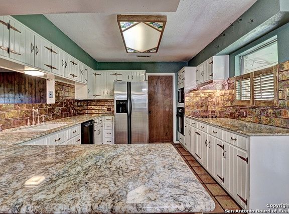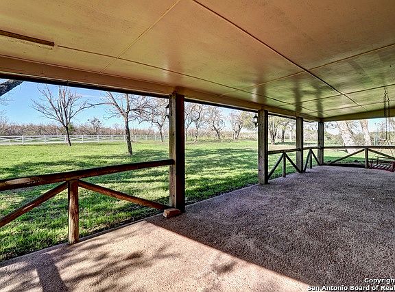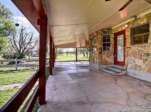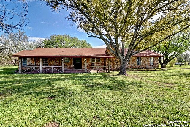 Beautiful country property! Private setting on approx. 2.5 acres. Level land with large shade trees! Completely fenced and gated! Rock exterior single story home approx. 2200 sq. ft. with huge front and rear porches! Detached 1.5 garage! Storage Shed. Wall to ceiling Rock fireplace! Granite countertops! Laminate & Tile flooring. Minutes to San Antonio, New Braunfels, & Seguin! La Vernia schools! Built in Bar B Q pit! Sit on your private porch with your favorite beverage watching the cows go by!