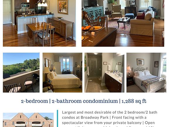 Largest and most desirable of the 2 bedroom/2 bath condos at Broadway Park | Front facing with a spectacular view from your private balcony | Open concept living space with hardwood floors and 10' ceilings | Granite counter tops in the kitchen, stainless appliances including refrigerator, and a large pantry | Master bath with new custom walk-in shower | Master bedroom with huge 9' x 15' closet | Controlled-access building and secured parking