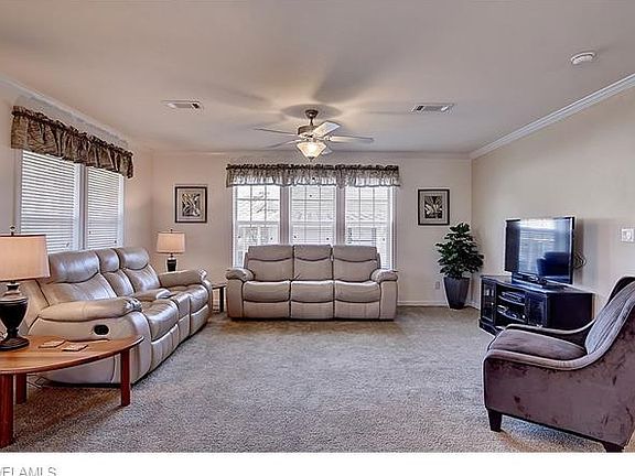 55+ COMMUNITY! This home offers 2 bedrooms with a den. Home features include open floor concepts, large master bedroom with on-suite bathroom, dual sinks with walk in shower, laundry in residence with storage cabinets and large counter for folding clothes. The community is very social with heated swimming pools, shuffle board, and organized social events. The community is located conveniently off of Old 41 with quick access to restaurants, shopping, beaches, and all of SWFL has to offer!