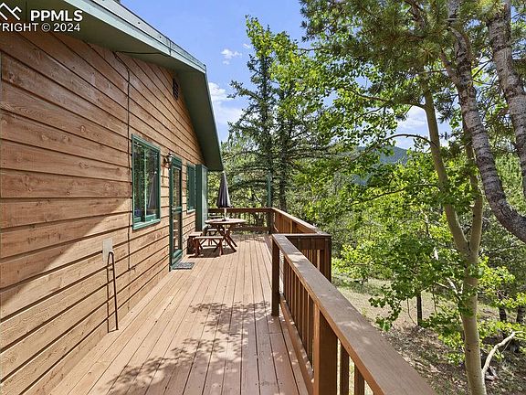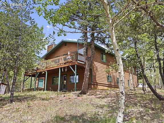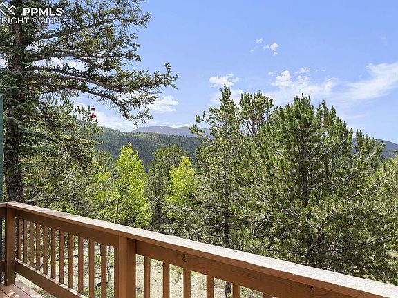 Looking for a custom home that exemplifies true Colorado Living? This is it! TEN acre, treed, private lot with a raised ranch home with lots of updates! Located in the Raspberry Mountain subdivision through a locked gate for security and privacy. Only 10 minutes to Divide, with a grocery store, restaurants, and Paradox Brewery. You drive up a private road, Cantiberry Road, to the gate. There are only 15 properties in the subdivision, and only 9 homes! As you approach the property, you are intrigued by the setting; lots if varieties of trees, with frequent visits of wildlife (including deer, elk, birds and recently even a moose!) You notice a custom storage shed, and an oversized 2 car garage with a tall door for an RV or truck, and even a service pit! The garage is large enough for a shop! As you approach the home, you notice a metal roof and an expansive deck. Going on the deck, you are awestruck by the fantastic mountain views; Sentinel Point, Pikes Peak and the Sangre de Cristo mountain range! Going inside, you are greeted with an open floorplan with custom hardwood floors! There is a warm, gas fireplace in the living room, accented by large, south-facing windows showing off the views. The kitchen has stainless steel appliances, with a gas stove and eating bar. Even a heated tile floor in the kitchen! Down the hall is the master bedroom with bathroom. There is a large main level laundry/mud room with a window and extra storage. Downstairs is a huge family room with a gas heater and a walk-out to the backyard. Two more bedrooms and a bath, plus a storage room featuring a RENNAI Whole House Instant Hot Water heater and an installed radon mitigation system for your safety. There are 2 custom solar wall heaters - one on the deck for the living room and one in the shop to lower energy bills in winter. The property even has access to a hiking trail into Pike National Forest! These properties are very rare to come on the market, so best hurry before it's too late!