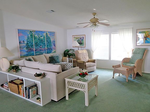 Get ready to enjoy Florida living in this TWO bedroom, TWO bath home that comes fully furnished. No need to bring anything other than your suitcases. This home sits on a perimeter lot so you have only nature behind you. You can relax on the rear patio or in the windowed Florida Room that has A/C. This is a split floorplan with the primary bedroom suite in the front and the guest room in the rear for privacy. Very clean, bright and well maintained. 2010 ROOF and 2012 HVAC system. Don't wait, this home won't last !!
