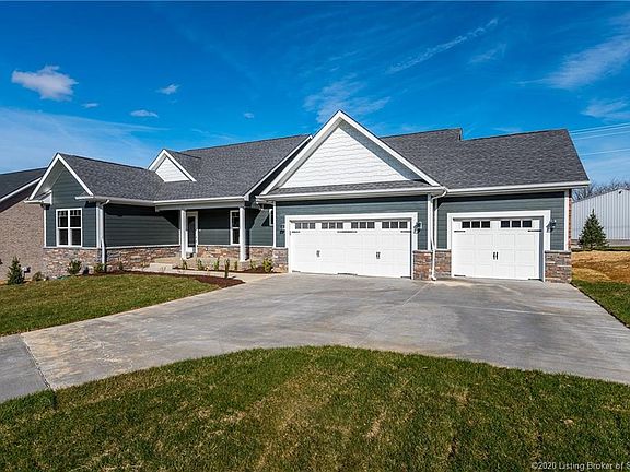 ***Open House on Sunday, May 24 from 2-4PM*** Jefferson plan w/FINISHED DAYLIGHT BASEMENT built by Witten Builders in Catalpa Ridge, Floyd County's hottest development! This Craftsman style ranch w/ a 3 CAR GARAGE is eye catching and the QUALITY shows throughout. This Open Concept home has many features you'll love, smooth ceilings, wood flooring, Large Master Suite w/ Private master bath that has 6ft custom tile shower, Oversized Walk In Closet & Double vanities. Large Laundry Room, Many Andersen windows bringing an abundance of natural light, Granite Countertops in Kitchen, along with the handy Utility Garage, walk way and front porch to be wood stamped and stained. Lake view property with views of a horse farm!