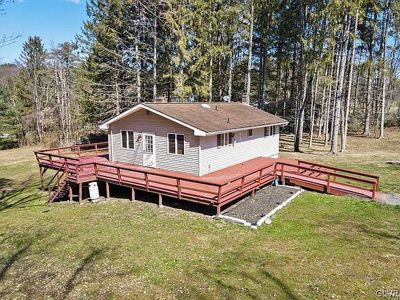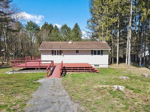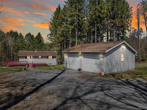 Highest and best offers due by Monday April 8th at noon. This charming ranch-style home offers a cozy and inviting atmosphere with two bedrooms and two bathrooms. The interior features beautiful hardwood floors throughout, creating a warm and inviting living space. The home is equipped with two pellet stoves, providing efficient and cost-effective heating options for those chilly winter nights. Additionally, the property boasts a modern mini-split HVAC system, ensuring comfort all year round. Step outside onto the wrap-around deck and take in the stunning views of the expansive 1-acre lot, perfect for enjoying the outdoors and entertaining guests. Conveniently located only a short distance from Blue Mountain Ski Area, Beltzville State Park, and historic Jim Thorpe, this home offers a perfect blend of tranquility and accessibility to outdoor activities. With a two-car detached garage and plenty of off-street parking, this home provides ample space for vehicles and storage. Don't miss the opportunity to make this peaceful retreat your own!