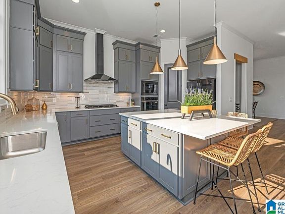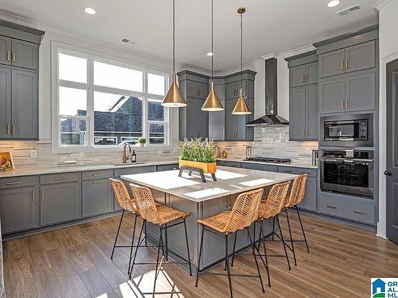 You won't want to miss this opportunity in Hoover's Hottest New Home Community! Our gorgeous brick Murphy Showcase has 5 bedrooms and 4 full bathrooms. Over 3700 square feet you’ll enjoy 2 bedrooms on the main level welcomed by a warm entryway. 11ft ceilings in the living/dining/kitchen/covered patio and walls of windows make this open floor plan flowing with natural light. The primary bathroom is a spa dream complete with a large shower, free standing tub, and designer double vanity with drawer bank. Large open concept living area with fireplace flows nicely into the kitchen with premium appliances and a sink with oversized windows overlooking the backyard. The upstairs den along with 3 additional bedrooms are enough features to make this a forever home! & this home backs up to the common area! Amenities in Bradbury include pool, fitness center, wiffle ball field, pickle ball court, playground and more!!! Come see Hoovers newest sought after neighborhood, Bradbury at Blackridge!!