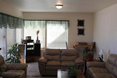 Charm & sunshine await you in this 6 bedroom 3 bath home overlooking Historic Del Norte. Come home to comfort & relax in this tastefully decorated & designed main level open kitchen/ dining area that leads to the Timber Tech low maintenance deck that is perfect for entertaining guests. Custom built features include: granite countertops, stainless steel appliances, Alder cabinets, recessed lighting, warm colors, bull nose corners, sculpted 16 x 16 tiles, custom built cantina wet bar, sunken sunroom, 2 bedrooms, full bath, laundry room, walk-in pantry & attached 3 car heated garage with remote & keyless entry. Suite retreat/master bedroom boasts cozy fireplace, aspen tongue & groove on cathedral ceiling, garden tub, double sink, walk-in tiled shower with 2 showerheads, oversized walk-in closet, office, private deck & sitting room adjoins suite & is suitable for exercise equipment. Extra large lower basement levelincludes 3 bedrooms, full bath, laundry room/mechanical room, family room, & movie projection room. Property has in floor radiant heat, cellulose insulation, computer networking cat 5 & RG6 cable throughout home. Outside features include: Established yard with sprinkler system, stamped colored concrete, built-in fire pit & basketball hoop with concrete retaining wall & 10 x 12 storage shed all located on this 150 x 150 corner lot with abundant wildlife. Schedule your private showing today!!!