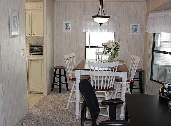 This 2 BR 2 BA well maintained home located in 55 plus active park is being sold turnkey and move in ready. Nicely furnished and equipped just bring your clothes has great storage, extended privacy carport, storage shed, full front Florida room with AC. Perfect for relaxing, people watching or entertaining.