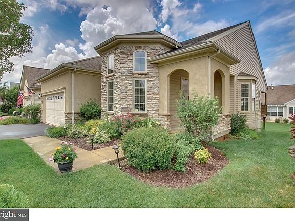 Here it is....A wonderful very popular side porch JEFFERSON Model with many, many upgrades. Gourmet Kitchen w/Cherry 42" Cabinets, under counter lights, Ceramic Tile Backsplash, Corian countertops, Built in 2 Drawer Fisher Paykel Dishwasher, New Samsung Refrigerator (2017), built in New Micro-wave convention oven (2017), Pots and Pans drawers. Hardwood floors through-out Living room, Dining area, Kitchen and Hallways. Nice size master bedroom with master bath having Cherry Vanities, Glass shower doors. Very, very large, unfinished, daylight basement with 9' ceilings and a fireplace to give additional warmth. This basement can be your man or woman cave, shop area, exercise room, recreation room and still have lots of storage area! Plantation blinds through-out, ceiling fans in bedrooms, dinette, den (dining room) and rear covered Patio. Also the access to the Den(dining room) has French doors. Closets have California style for super ability to get every square inch for your clothes etc. Two car garage has insulated garage doors with windows. Has the latest NEST thermostat can be operated on your own or with smart phone or Alexa etc. This home has very economical Gas & Electric. The owners have savings plan with PECO. These owners have done a wonderful job taking care of this home with many upgrades too far to mention all of them. All this plus the great enjoyment of a 17,000 square foot Clubhouse known as the MARQ with indoor pool, health SPA, two physical fitness rooms, large ballroom w/kitchen, library, several club rooms one with two full size pool tables and many card tables for socializing or playing cards. Outside the Clubhouse is a very large swimming pool for you to enjoy along with your entire family. two bocce courts, two Har-TRu clay tennis courts, and shuffleboard courts. Heritage Creek is an active Adult Resort Community and just waiting for you to come and have some fun! Sellers are including a one year home warranty.