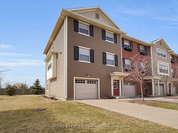 Welcome to this beautiful contemporary townhouse, located in sought after Northwest London. The stylish kitchen features high-end finishes, upgraded stainless steel appliances, quartz countertops, an island breakfast bar, and ample cabinet space. The spacious middle level boasts an open-concept layout with 9ft ceilings, natural light through large windows, and custom blinds. In the upper level you find 3 bedrooms, a large master suite with a 3-piece en suite and a walk-in closet. Other features include 2.5 baths, 4-piece main bathroom and a convenient stackable laundry. The home has a double car tandem garage and private driveway, offering parking for up to three cars. Enjoy low condo fees for a hassle-free lifestyle. Book your private showing today to see this fabulous Condon.