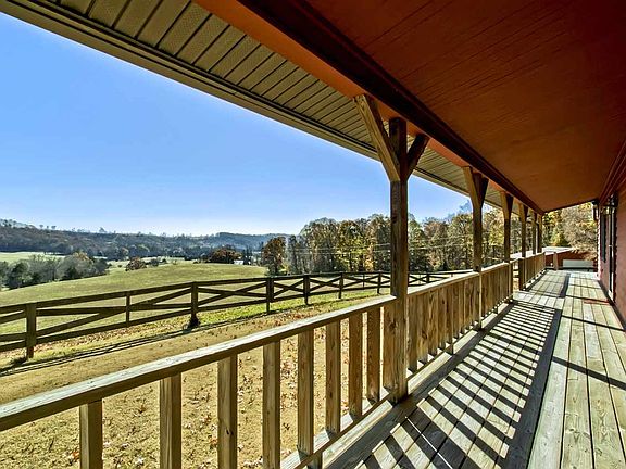 Beautiful 45+ acre executive farm in the rolling hills of East Tennessee. The views here are amazing!! The finely built home features 3 huge bedrooms with the master suite on the main floor. The kitchen, with Mexican stone tile floor, is equipped with 3 ovens for your holiday baking needs. A wood burning stone fireplace with a Heatolator is in the main living area for premium enjoyment by all. The laundry room is just off the kitchen and has great storage space for a pantry. Both upstairs bedrooms are over-sized and one features a large attached bonus room. Plenty of floored attic storage as well. There is a wrap around front porch with both side porches screened with solar screen. New gutters with lifetime transferable warranty. Andersen thermal windows, storm doors and glass sliding door in Master bedroom. Outside the home features a huge stone patio with built-in lighting. The lawn is zoyzia and has landscape lighting. The crawl space is newly encapsulated and has a dehumidifier that has a 9 year transferable warranty. The farm has approximately 20 acres of well maintained fescue pasture with an almost ONE ACRE STOCKED POND that is fed by it's own well every day. The pond never dropped an inch even in the last drought. This property features two barns, each with its own electricity. The large newer barn is equipped with shelving and cabinets, skylights, drive through doors and would make excellent workshop space as well as storage space for large equipment or hay. The smaller barn has stalls for animals and extra storage. All of this is just 3 miles from I-75 and less than an hour's drive to Knoxville or Chattanooga. Call today to find out even more great details about this excellent property.