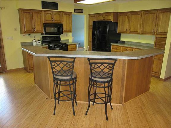 Walkout ranch style home on a quiet street in a pleasant wooded neighborhood with over 3200 finished square feet on a .41 acre lot. Tile & wood flooring are found in this four bedroom, three bath home. Tile flooring throughout the foyer, hallway, laundry room & bathrooms. The kitchen/dining area & great room boast terrific bamboo wood flooring. The open floor plan in the great room offers a cozy fireplace flanked by windows to scenic views of the backyard. The kitchen features a large breakfast bar, appliances & slider door to a deck. Formal living & dining rooms, main floor master with 2 closets & private bath with dual sink vanity. The finished walkout lower level offers a family room with laminated flooring, second fireplace & a HUGE rec room that could be used as a theater room! 3rd & 4th bedrooms (new carpet), bath & oversized storage/workshop area. Heated 2 car garage, shed & newer driveway, shingles & mechancals.