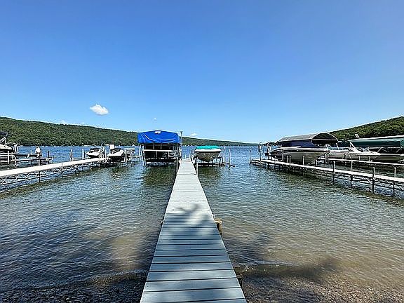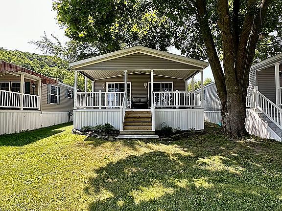 Welcome to Unit 98, a three-bedroom, two-bath home located at Camp Arey, a seasonal vacation community situated directly on the East Side of Keuka Lake, in the heart of New York's Finger Lakes region. This 1500 square foot open-concept home is summer-ready and turn-key. At Unit 98, just a short walk to the beach, you can enjoy lake life while relaxing on the spacious front porch with a partial water view. Step inside to discover a partially furnished interior featuring an open-concept living and dining space, ideal for entertaining or relaxing with family and friends. Recent updates include newly installed floors, moldings, and light fixtures. Additional highlights of this 2004 home include an open floor plan with a large front porch facing the lake from the second row of homes, central heat and window air conditioning, two full baths, a master suite layout, and all major appliances, such as a washer/dryer, range/oven, and refrigerator, included. As part of the community amenities, residents have access to a dedicated beach area for swimming, a dedicated boat lift section, and shared dock space, allowing for easy lake access for boating and water activities. Additional features of Unit 98 include a shed with electricity, a gas grill, a lawnmower, and three bikes, offering convenience for outdoor enthusiasts. The home will be sold partially furnished. A list of inclusions and exclusions will be provided upon further inquiry. For more details on this home, and/or to schedule your private showing, please email Bebette Yunis, Licensed Real Estate Broker, at Byunis@yunisinc.com. At Camp Arey, residents purchase and own the homes and then lease the land on a seasonal basis from Camp Arey, Inc. Please note there are no short-term rentals permitted in this vacation community. For more information on lease charges and terms or to be added to our waitlist for future availability, please call 607-737-5233 or email Bebette Yunis at the email above.