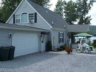 Cape Cod style chalet on Keuka Lake's desirable East Side. Located in newly updated Camp Arey, this home sits on leased, seasonal, level waterfront property. Drive into your private gravel parking area, next to the 2+ car finished garage. Concrete