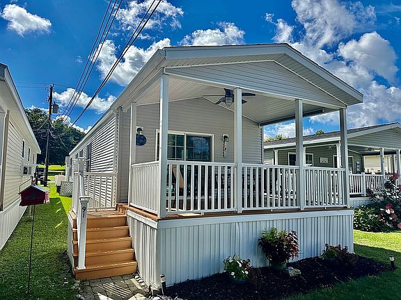 Welcome to Unit 91 at Camp Arey on Keuka Lake. This beautifully renovated 1,100 square foot manufactured home offers modern updates just steps from the lake and is ready to be your summer retreat. Camp Arey is a seasonal vacation community situated on Keuka Lake's popular East Side. With partial water views from the front porch, kitchen, and living room, this home offers both lake charm and modern convenience. The recently updated kitchen features new cabinets, countertops, a stylish tile backsplash, and all new appliances, perfect for those who love to cook and entertain. Inside, you’ll find 3 bedrooms and 1 oversized full bathroom with abundant built-in storage. Luxury vinyl hardwood flooring flows throughout the main living areas and bathroom, creating a cohesive and elegant feel. Step outside to the front porch, where you can enjoy partial water views while relaxing with friends. Make your way to the custom TREX back deck, which is complete with an outdoor bar area and a walkway leading to a large shed with electricity. All major appliances are included in the sale. This home is sold unfurnished, offering you the opportunity to make it your own. Additional details include: -Numerous recent updates -2006 Fairmount -Central air and heat -New water heater -New dock -New gutters -All major appliances including washer and dryer -Ample built-in storage in bathroom As part of the community amenities, residents have access to a dedicated beach area for swimming, a dedicated boat lift section, and dock space shared with one other dockmate, allowing for convenient lake access for boating and water activities. For more details on this unit, and/or to schedule your private showing, please email Bebette Yunis with Yunis Enterprises at Byunis@yunisinc.com. At Camp Arey, residents purchase and own the homes and then lease the land on a seasonal basis from Camp Arey, Inc. Please note that short-term rentals are not permitted in this vacation community. For more information on lease charges and terms, please call 607-737-5233 or email Yunis Enterprises, Inc. at the email above.