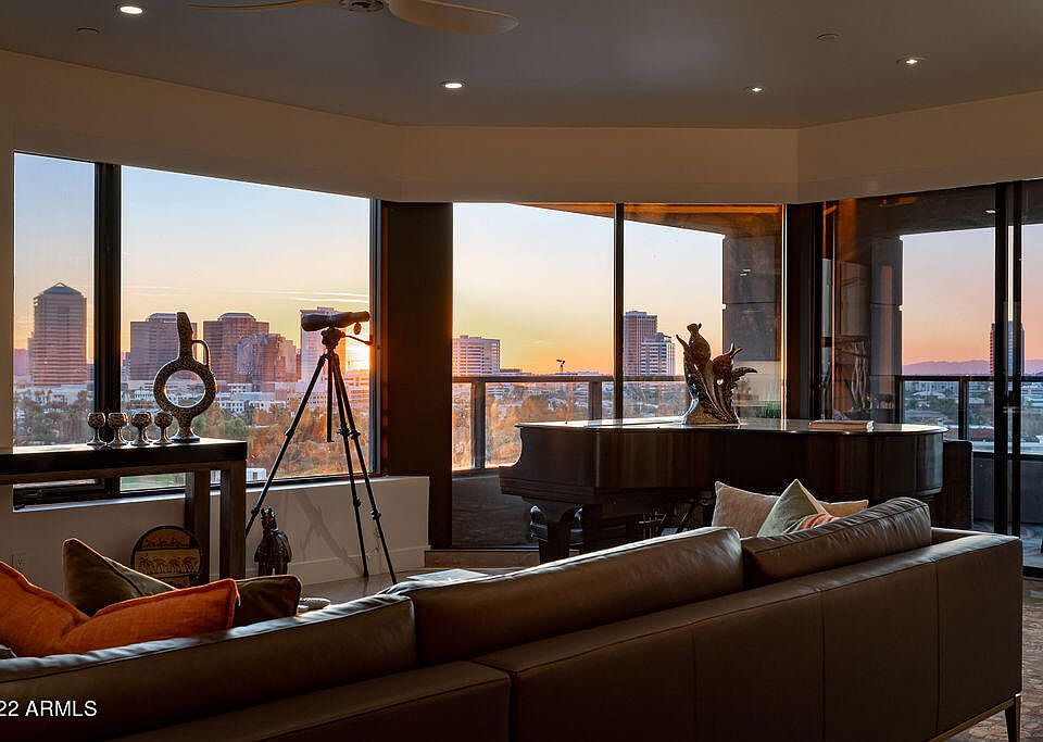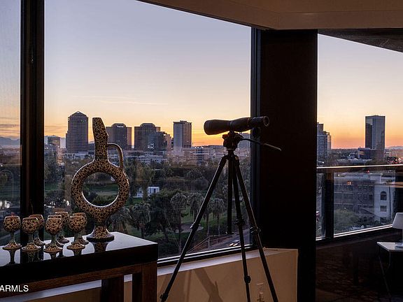This two bedroom two and a half bathroom condominium on the 8th floor of Crystal Point has been completely remodeled from floor to ceiling. This property was remodeled not as a flip and therefore no expense was spared on the uber fine finishes. Italian porcelain flooring throughout, all new custom lighting from Circa Lighting Company and automated shades on the windows. The kitchen is stunning with custom cabinetry, Quartz countertops, under counter lighting, Subzero and Wolf appliances. Bathrooms are equally lovely with fine plumbing fittings, lighted mirrors, and new everything. Even the closets are of the finest quality; customized to maximize storage. The floor plan is open, and the rooms are filled with natural light. Views to downtown phoenix sparkle at night. Views during the day include the beauty of the Phoenix Country Club golf course. This property is a unique gem and centrally located, just minutes to Sky Harbor, downtown Phoenix, and the Biltmore.