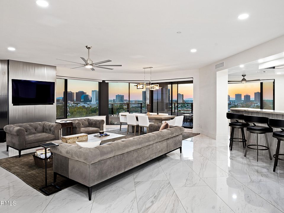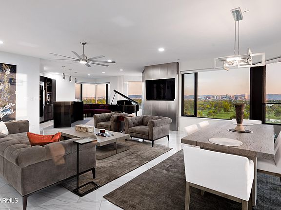 The only unit in Crystal Point with over $40,000 in plumbing upgrades beneath the residence and a new AC installed in 2024. Enjoy unobstructed 270° views of Downtown & Midtown skylines, Phoenix Country Club Golf Course, and the Mountain Preserve. This 2334 sq ft 9th-floor contemporary home features high ceilings, a custom wine bar, and an open kitchen with Dacor Luxury Smart appliances. Two en-suite bedrooms, electric shades, and a spacious balcony with gas BBQ hookup. Building amenities: Olympic lap pool/spa, gym, concierge, 24-hr guard, 2 garage spaces, storage, and guest suites. Crystal Point is unparalleled in Arizona.