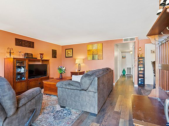 Sweet 1 level home in a convenient So. location. new in 2022: roof & gutters, vinyl windows, ext. paint, flooring, kitchen sink, water heater, tile surround in bathtub. Open floor plan, pantry in kitchen. Deep 2 car garage, spacious fenced yard with patio. Sprinklers in front and back. Community park and playground.