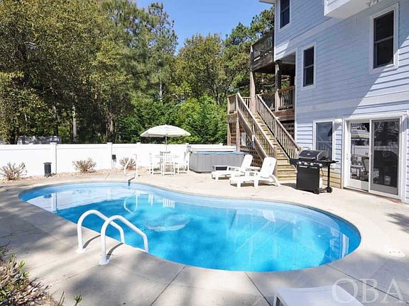 Nestled in the Pines on a Cul-De-Sac in the Highly Sought After Community of Corolla Light, this 5BR 5.5BA vacation home has everything you want for a week, a month, or the rest of your life! Top floor has Master Suite with a Large, Private Bath with a Double Sink Vanity, Jetted Tub, Custom Tile Shower, Queen Bed and slider onto the Spacious Sun Deck. The Great Room features Vaulted Ceilings, Engineered Plank Flooring, Gas Log Fireplace, Dining Area, Elevated Sitting/Reading Area, Lots of Windows and 2 Sliders onto the Spacious Rear Sun Deck. The kitchen has Tile Floors, Granite Counters, Dish Washer, Glass Top Range/Oven, Built in Microwave, Fridge and Stainless Double Sink. Mid floor has 3 King Bedrooms. 2 with Private Baths, 1 with a shared full bath. The 2 rear BRs have sliders to Spacious Shade Deck with stairs to pool area. Front BR has large Walk-In Closet and slider to Private Deck. There is also a separate Family Room with Glass French Doors, TV and a Pull out Sleep Sofa as well as a slider to the Shade Deck. Ground floor has a large bedroom with Pyramid Bunk Bed and a full bathroom with Tub Shower that is shared with the ground floor. There is a large Laundry Room and a Game Room with Foosball table, Card Table, Wet Bar with Microwave, Sink and Full Sized Fridge. Game Room opens to the Spacious Pool Area with Hot Tub. This home is a short walk to the Indoor Pool and Tennis Club and an easy bike ride to the Spectacular Oceanfront Activities Complex featuring Beautiful Oceanfront Pool, Restaurant, Tennis, Basketball, Etc., Etc., Etc! This home and community Have it All!