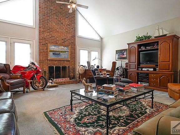 • Interior Features: Fireplace, 9 Ft+ Ceilings, Window Blinds, Ceiling Fan, Vaulted Ceilings, Window Treatments, Attic Fan, Trey Ceilings