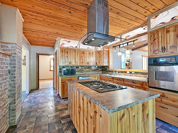 This peaceful and private property is located near town, with 58 acres of land. You can enjoy 1500 feet of Sucker Creek frontage and BLM bordering on one side. This home and property offer modern amenities, including a cell signal booster, power, water, septic, and a full house Generac* generator. There are plenty of activities to entertain with, such as hiking, camping, and swimming in your own swimming hole. You can also take in the breathtaking views of the orchard, meadow, and forest. The family room is spacious and filled with natural light, featuring open beam construction and double glass doors that lead out to the stamped concrete patio. The kitchen is equipped with cabinetry made from wood sourced from the property, roll-out shelves, and a kitchen island with a propane cooktop. The remodeled 400sqft. attic has knotty pine walls and ceilings that are illuminated by eight dormer windows. The three bedrooms are on the main floor. This is a must see, move in ready.