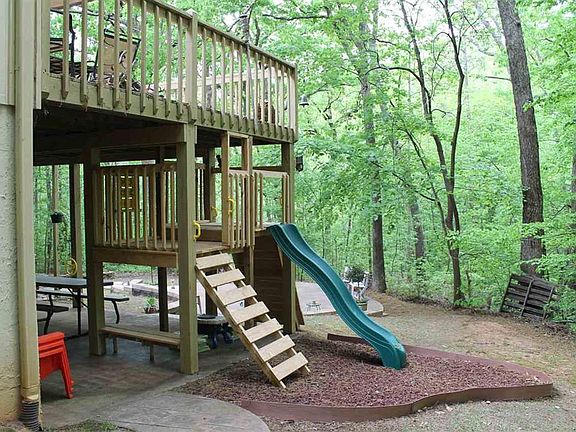 EXTRA LOT INCLUDED! This home is located just minutes from town yet you are surrounded by trees that offers a private setting. The home features a large open family room with rock fireplace and the main level has beautiful hardwood flooring throughout. The master is on the main level with access to the spacious back deck with a built in play area on the lower level. You will also have plenty of room entertaining at this home with the recreation room on the lower level with pool table and kitchenette. This area overlooks the large fire pit and patio area, A natural path is in place to the dock.