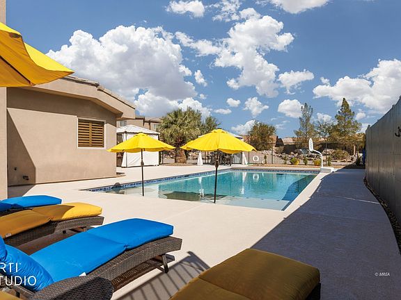 RARE 1.12 Acres - No HOA - Secluded Desert Oasis! This incredible RARE find is nestled in the scenic vistas of Mesquite, NV. The property showcases a luxurious layout that includes spacious living areas, a custom kitchen with ample storage, a primary suite AND a guest suite including 3 elegantly designed bathrooms - one of the showers doubles as a sauna too! Each room frames beautiful views of the meticulously landscaped yard. Outside, enjoy the ultimate entertainment and relaxation space. The backyard has a spectacular pool with mood lighting, a hot tub/spa surrounded by a manicured lawn, multiple lounging areas, a creative dining/bar area and a covered patio with misters and a cozy fire pit. For the sports enthusiasts there is a paved basketball and pickleball area as well as an RV garage with RV dump. The oversized lot has multiple areas for RV, toy and trailer parking. Underground storage container is an added bonus to this grand estate that already has everything! Indulge in the tranquility of this impeccably maintained property that has a private driveway and lots of room for all your wants and needs, offering a blend of comfort and luxury in a picturesque setting that also has onsite access to ATV trails.