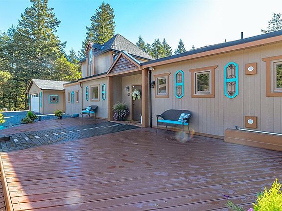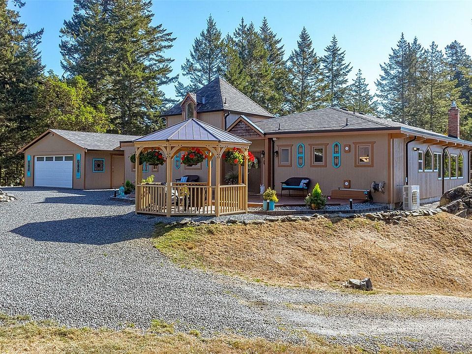 Welcome to 1040 Matheson Lake Park Rd a stunningly updated 10-acre retreat near Matheson Lake Park. Architect Peter Cotton's contemporary design features an open-concept kitchen, dining, & living room area with a cozy stone fireplace. Outside, enjoy multiple decks & two large outbuildings a 1785 sq.ft. triple car/rv garage whole-house heat pump (2017). Highlights include a walk-in pantry, updated kitchen (2018), hardwood & vinyl flooring 584 sq.ft. double car garage. Recent upgrades include a new septic system (2017), standby generator (2023), and a central forced air heat pump custom bathrooms with heated toilet seats. Outdoor living spaces boast a south-facing deck with a hot tub, electric awning, & propane hookup. Engage in outdoor activities, from fishing at Pedder Bay Marina to cycling the Galloping Goose Trail. The property includes, a covered work area, & two RV hookups. Ask your realtor for the list of upgrades. Experience the tranquility & functionality of this beautiful home