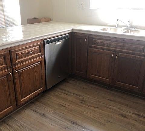 I cannot show this property without an approved application. We do accept zillow applications. Newly remodeled kitchen with new stove and dishwasher and cabinets. Has new vinyl flooring throughout. This unit has approx. 1400 sq. ft! It has a master bedroom and bath. It has a dining room right off the kitchen. The kitchen has a stove, dishwasher and garbage disposal. You have to provide your own refrigerator. It has a spacious living room with a sink to help serve drinks for entertaining. It has a spare bedroom with another bathroom in the hall. It has a two car garage. No pets are allowed. The water, trash and gardening is paid by the owner.