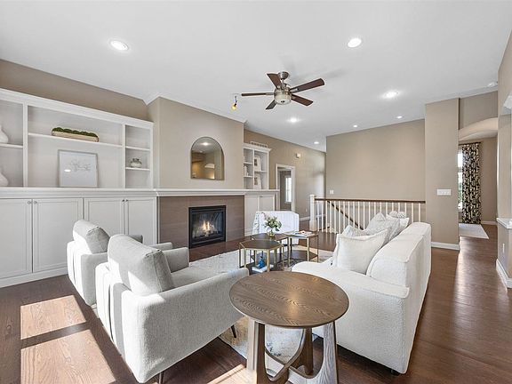 This beautifully crafted Rempel home showcases exceptional quality and attention to detail throughout. Enjoy breathtaking, unobstructed views of the serene common area behind the home, providing a rare sense of privacy and tranquility. Interior highlights include gleaming hardwood floors, tiled bathrooms, and exquisite custom built-in cabinetry by renowned craftsman Randy Rempel. The kitchen is equipped with premium Bosch appliances, perfect for the modern chef. Exterior features include durable Hardie plank siding and low-maintenance Trex-style composite decking, ideal for year-round enjoyment. A spacious screened-in porch and adjoining deck offer seamless indoor-outdoor living. Additional upgrades include a central vacuum system, pre-wiring for whole-house audio, and a versatile garden room with heating and air conditioning—ideal for hobbies, an office, or a relaxing retreat. The formal dining room is enhanced by a butler’s bar, perfect for entertaining, while the finished basement boasts a full wet bar for even more gathering space. The primary suite features a luxurious walk-in closet with direct access to the laundry room, offering comfort and convenience. This home truly combines craftsmanship, functionality, and elegance—perfect for those seeking a refined living experience.