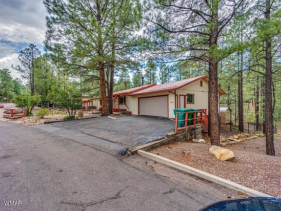 Remarkable home in the heart of Show Low, close to everything, including the schools. This 3 bed 2 bath home is nestled in the tall pines with the beautiful landscaping and located in a cul-de-sac. In the living room there is a flue if a wood or pellet stove wants to be added. Garage, shed with loft and half basement give you plenty of room for storage! Park your RV on the concrete pad and hook up to the power and sewer. Great neighborhood with paved streets. Don't miss this one!