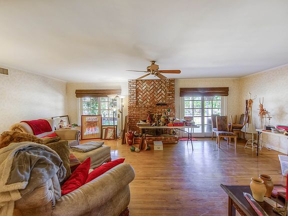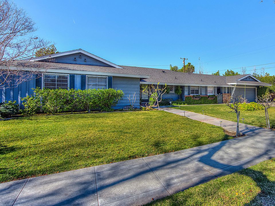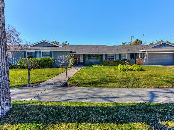 Custom SINGLE STORY RANCH HOME in HIGHLY SOUGHT AFTER NEIGHBORHOOD! This well-built home has a HUGE 12,902 sq. ft. lot and is located on a quiet CUL-DE-SAC. The wonderful floor plan includes ORIGINAL HARDWOOD FLOORING THROUGHOUT the living areas and bedrooms, a spacious living room with BRICK WOOD BURNING FIREPLACE, a SEPARATE FAMILY ROOM (or large formal dining room) with a SECOND BRICK WOOD BURNING FIREPLACE, generous kitchen breakfast area, master suite with upgraded bathroom, good sized bedrooms and a separate indoor laundry room. Two vintage style pedestal sinks highlight the upgraded main bathroom. Custom moldings and tasteful use of wainscot are throughout. From the living room, you can look through the French doors and covered patio to enjoy views of the huge rear yard with 17 varieties of fruit trees! There is a separate hobby/gardening room behind the garage. Along with CENTRAL AIR CONDITIONING, the home has a freshly painted exterior and a 2 year old roof. This location and neighborhood are among the best in Orange!