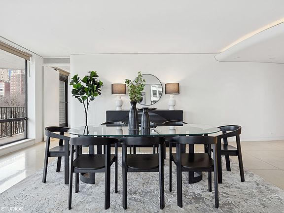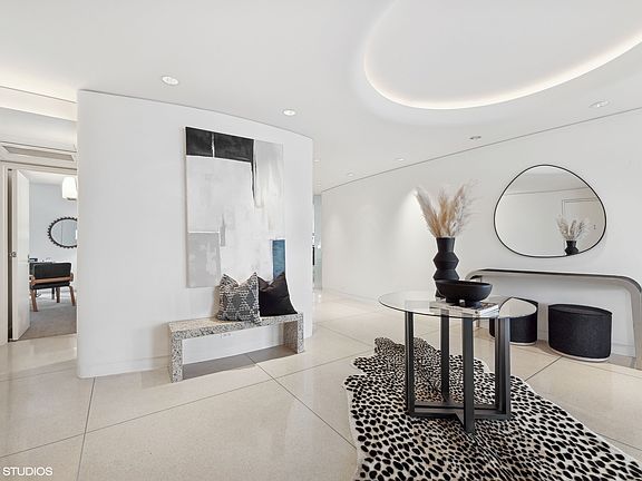 With gently sculpted curved walls and ceilings, up-lit gallery lighting, and sublime open spaces, this completely redesigned residence offers what so few can: the opportunity to live and entertain in a one-of-a-kind piece of art. Reconfigured to maximize natural light, drama, and function, the space is a breath of fresh air - the perfect backdrop to your life, your collection, and your gatherings. A stunning entrance organically flows into the expansive living and dining rooms with magnificent terrazzo floors, walls of glass into the trees overlooking Oak Street beach, and floor-to-ceiling frosted glass doors opening to a separate family room/library. The refined kitchen - with flat-fronted cabinets, integrated appliances, an island with seating, and a large walk-in pantry - opens to the terrace in front and to the separate laundry/utility room in the back. A wonderful primary suite has an enormous outfitted walk-in closet and bath swathed in slabs of travertine. Two additional bedrooms offer flexibility to your lifestyle and needs. The "D" tier is the best in the building: the most square footage and the best orientation, looking north. Move in and enjoy this architectural masterpiece in Chicago's best full-service building w/24-hour doorstaff, onsite management, large indoor pool, gorgeous ballroom, extensive workout facilities, and huge common roof terraces.