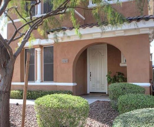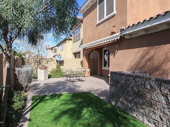 Owners are in the process of moving out. Interior photos will be taken in the near future. Light and bright, this 3 bedroom, 2.5 baths home has 20 inch tile in all the right places and upgraded staircase banister. Staggered dark cabinets and dark blinds throughout. Corian kitchen countertops and pre-wired for surround sound. Backyard has a propane fire pit, water feature, extended remote-controlled awning, stubbed for a gas barbecue and has artificial grass.This home is a must see!