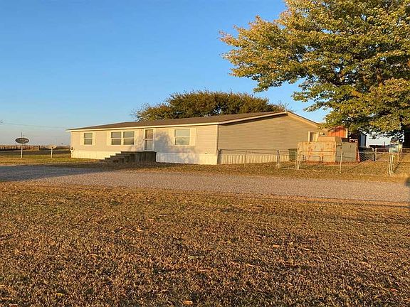 Well cared for 3Bedroom, 2 bath mobile home on 17+/- acres. Home is right off black top(HWY 77). Above ground storm shelter, fenced for livestock. 60x80 Butler building with concrete floors, electric ect. There is also a 30x90 building with part concrete floors and part dirt floors. Butler Rural Electric is power company, well water, owned propane tank(gas), septic tank. Don't miss out on this rare find in the country off black top! All information deemed reliable, buyers agent to verify all information. This home is not on a permanent foundation.