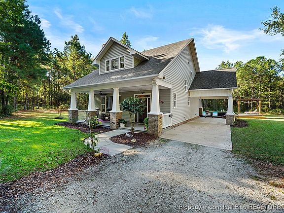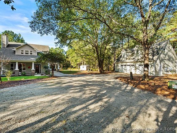 Charming custom built cottage with almost 10 acres of beautifully maintained land perfectly situated close to Fayetteville, I-95 and Fort Bragg. Very private setting with mechanical gate at entrance of long private drive that opens to this beautiful home tucked into the woods and beautifully landscaped. The Main residence features 3 Br/2.5 baths with all custom finishes and design, large deck, pergola and swimming pool. Adjacent to the home is a detached fully insulated three car garage, with a loft/apartment above that includes a full bathroom, kitchenette and living/bedroom combo. The home and loft are meticulously designed with no detail overlooked. Fine finishes like Carrara Marble in kitchen, pot filler over range, McKenzie Childs designer wall finishings, designer light fixtures and decor and many other charming details. Whole house 22kw generator, and wired shed are outside features that are included. Showings to begin weekend of October 11th.