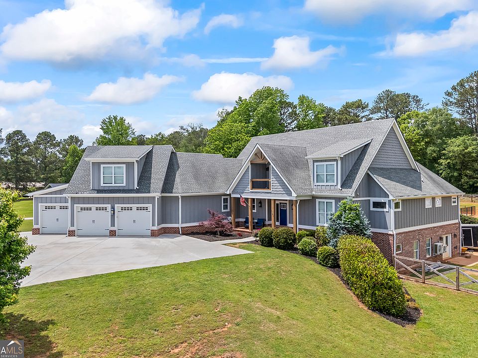 This exceptional six-bedroom, six-and-a-half-bathroom home sits on 3.7 pristine acres, offering 6,500 square feet of thoughtfully designed living space. The open-concept main level features a bright family room with custom brick columns, natural wood headers, and a cozy fireplace that flows seamlessly into the gourmet kitchen. The kitchen showcases a massive center island with farm sink, abundant custom cabinetry, quartz countertops, and professional-grade appliances complemented by elegant tile backsplash. Hardwood floors gleam throughout the main living areas, while oversized windows flood the space with natural light. The main-level owner's suite boasts an enormous bathroom with spa-style shower featuring double entry and rain head, plus a luxurious claw-foot soaking tub. Upstairs, generously sized bedrooms each include private bathrooms and walk-in closets. The partially finished basement comes plumbed for an additional kitchen, while outdoor living shines with a covered deck, flat backyard, and sparkling pool. Located just minutes from Lane Creek Golf Club.