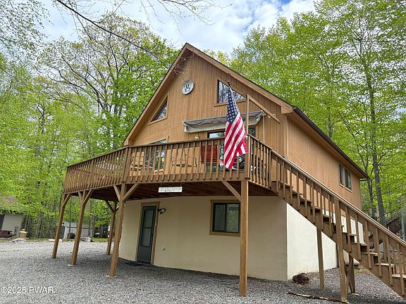 Step into the warmth and character of this stunning chalet-style home, where rustic charm meets modern convenience. Featuring vaulted ceilings in the living room, exposed knotty pine beams, and a cozy propane fireplace, this inviting space is perfect for relaxing after a day of adventure.Enjoy ground-floor entry for seamless access and retreat to the primary bedroom with a private en-suite bathroom for ultimate comfort. Outside, the large circular driveway easily accommodates up to 10 cars, making parking a breeze for guests and allowing easy boat trailering for lake lovers.The POA dues cover the water, sewer and trash bills! Enjoy all the amenities the Wallenpaupack Lake Estates community has to offer. You have privileges to access 2 private lakes, beaches, 2 outdoor pools, an indoor pool & gym, dog park, lodges & game room as well as access to the private community marina on the big lake, Lake Wallenpaupack! You're not just buying a house; you're treating yourself to a resort-like lifestyle!
