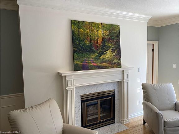 RARE OPPORTUNITY! Luxury condo, 1954 S.F. plus partially finished lower level, backing onto golf course in exclusive, highly sought-after private enclave. Perfect for Work-At-Home professional couple desiring 2 main floor offices for digital connectivity This beautiful, detached condo features 9ft ceilings, double car attached garage with inside entry. Bright, welcoming foyer with two skylights leads to a large dining/living room with gas fireplace, crown molding and oak hardwoods, perfect for entertaining. Spectacular views of the golf course can be seen from the kitchen, eating area, living room/dining room and master bedroom. The main floor features a bright home office with pocket French doors and two skylights. Enjoy cooking in the large, eat-in kitchen with two ovens and an abundance of cupboards. The master bedroom accommodates a king sized bed, walk-in closet, ensuite with double sinks, separate shower and tub. The lower level has a finished family room, 3 pc. bath, den, work room and large storage area. Enjoy your summers in the complex's heated, salt water pool, then spend the evening on the 30 foot composite deck overlooking the golf course and beautiful gardens. Updates include: cedar shake roof and skylights (2015), AC, on demand hot water heater, alarm/security, eaves, downspouts, soffits and fascia, retractable awning, composite deck, furnace, window and doors