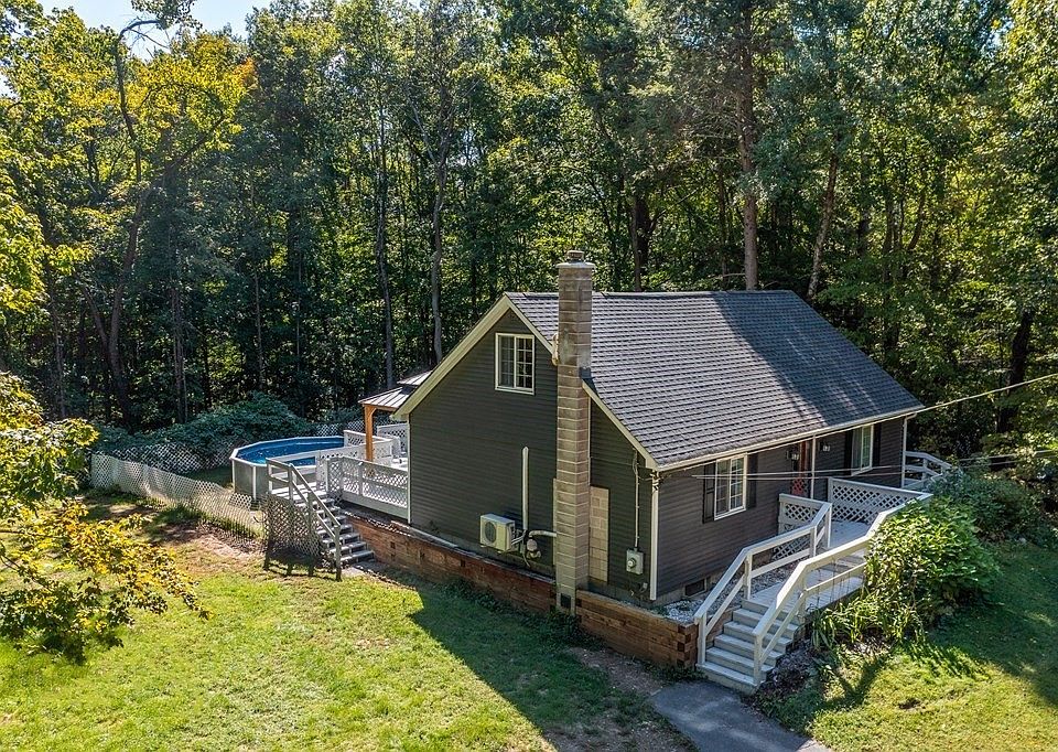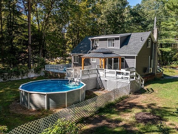 AFFORDABILITY AT ITS BEST in this bright and cheery Cape style home! Located on a private cleared lot, this cute property is nothing short of efficient with tons of updates and great outdoor space. The main living area offers an open layout allowing for lots of natural light. The living room provides a cozy pellet stove and a mini split for AC. You’ll love the spacious eat-in kitchen with appliances included, and sliding doors that lead to a huge backyard wraparound deck, canopy cover and new above-ground pool. Other newer items include vinyl siding, gutters, roof, windows, repointed chimney, stainless steel chimney liner, two mini-splits, interlock for generator and more! So much to offer for the price and just a short drive to downtown Easthampton and Northampton and just minutes away to all amenities and major routes. All that's left to do is move in - TOO GOOD TO LAST!