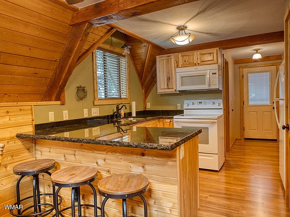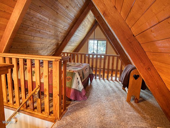 If you have been looking for an A-Frame Cabin in the mountains look no further! This meticulously maintained A-Frame is just under 1,000 square feet featuring 2 bedrooms and 1 bathroom (1 bedroom/1 bathroom downstairs, bedroom 2 in upstairs loft)! Fully remodeled in 2015 including: roof, windows/doors t/o, plumbing, flooring t/o, cabinetry t/o, countertops t/o & interior/exterior paint! Enjoy the cozy front deck and breathe in the fresh mountain air! Once you step inside you will enjoy soaring vaulted ceilings with t & g wood, warm woodwork throughout, granite countertops in the kitchen and bathroom & stunning Hickory doors & cabinetry! Out the back door to enjoy the back deck & fully fenced yard! Front deck & back steps were refinished in 2024! This one is a must see TODAY!
