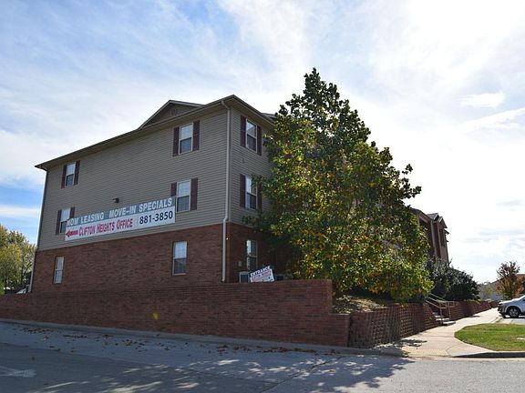 Clifton Heights Apartments 1040 S Clifton Ave Springfield Mo. 65802 417.839.1542 or 417.708.1283 or 417.839.0335 We offer 1, 2 and 3 Bedroom. Currently the Deposit is only $99.00 12 Month Lease. Kitchen if fully equipped with stove, dishwasher, microwave, refrigerator, disposal, pantry! Ceiling Fans Huge Walk in Closets in All Bedrooms Walk in Shower and Tub/Shower Combination Balcony or Patio. Plenty of Parking Space. Washer and Dryer hookups in each unit. Washers & Dryers Available to rent for $39 a set (per month) Pets welcome with approval. $150 Pet Fee plus $25 per month pet rent, per pet. $25.00 application fee per adult