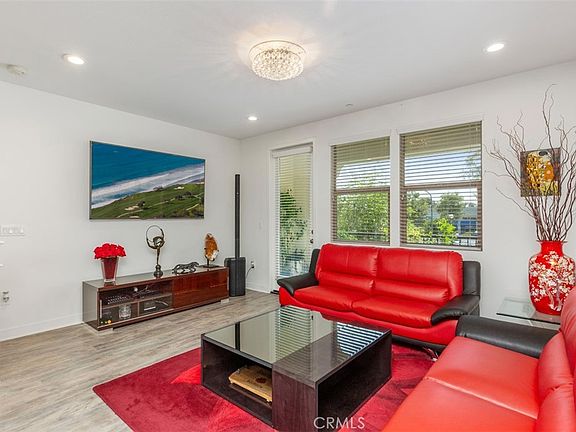 This exquisite 3-level townhome offers contemporary living in a sought out gated community. Constructed in 2017, this end unit features 3 bedrooms, 3 bathrooms and spans 1,879 square feet of living space. Upon entering, you will be welcomed by a spacious den. The high ceilings exude a sense of grandeur, while the abundance of windows adorned with custom shutters and shades, allow natural light to flood the space. The open concept and modern kitchen is perfect for entertaining, showcasing granite countertops, stainless steel appliances, and a generously size island. The two bedrooms, provide cozy retreats, while the master suite has a walk-in closet, custom cabinets with granite countertops, and upgraded tile in the bathroom. Additionally, a large built-in custom closet is located upstairs. Outside the Spanish influence, landscaping and architecture add charm to the property. Noteworthy features include eco-friendly solar panels, high efficiency water heater and a smart thermostat. The two car garage offers direct access to the house, along with ample guest parking. Situated in a vibrant community, this home is conveniently located near various cultural and entertainment attractions, including the Santa Ana art district, downtown historic Santa Ana, Discovery Science Center, Disneyland, Anaheim Packing House, South Coast Plaza and Little Saigon. Enjoy quick access to the beach in just 20 minutes and easy reach to the freeways 22, 405, and the 55.