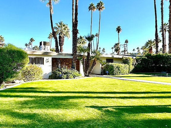 Fall in love with this stunning 3-bed, 3-bath home in Palm Springs' sought-after Deepwell neighborhood. This property embodies classic mid-century elegance with its low-profile lines and effortless indoor/outdoor living. Immaculately maintained by one owner for 30 years, the home blends vintage charm with subtle designer Mediterranean touches.Many original features are retained, such as the home's layout and even the vintage bathrooms. The home's size offers the exciting potential for updates, such as enlarging the baths, adding a guest half bath, or expanding the kitchen, all with minimal structural changes (see the conceptual floor plan).The front yard features mature landscaping and a breezeway connecting the two-car carport to the double-door entry with a stone accent wall. Inside, the open living space extends to a sunroom, which flows seamlessly into a stunning backyard with an updated pool, concrete decking, artificial lawn, and breathtaking mountain views.Two en-suite primary bedrooms open to the backyard, while a third bedroom connects to the hall bath and includes a private side patio. Highlights include a built-in bar in the sunroom and a chef's kitchen with high-end cabinetry and stainless steel appliances.Recent updates include two HVAC systems (2022 & 2023), a water heater (2024), and a refreshed roof. Whether you move in with only minimal updates or transform the home into one of Deepwell's most distinctive residences, opportunity awaits.