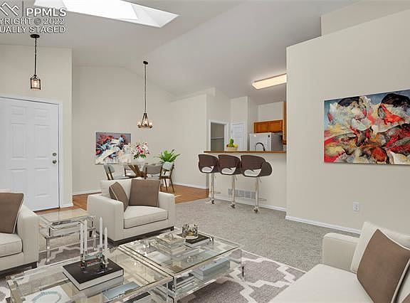 New interior paint, new carpet, new appliances, Fresh painted deck, new lighting, new furnace and so much more. Backs to open space and park. Main level living at its best. This home is spacious and has an open floor plan with vaulted ceilings, 2 skylights in the living room that allows for natural light plus a gas fireplace. The kitchen has a breakfast bar along with all new appliances, plus a gas range and is open to the dining area. This open floor plan makes an ideal home to entertain or to ensure everyone is part of the conversation. The primary bedroom is large and has its own big bathroom. 2 more beds and a full bath complete the floor plan. One bedroom would be ideal for an office as it walks out to the newly painted large deck. This great location backs to the park but is fenced in. This home offers a lot of bang for the buck and lives large plus clean as a whistle! Washer and dryer plus A/C and oversized two car garage are all a bonus! Awesome SW location close to Fort Carson, Broadmoor, Zoo, downtown and Old Colorado City, shopping, dining, and entertainment. It doesn't get much better than this. Run to see this one!