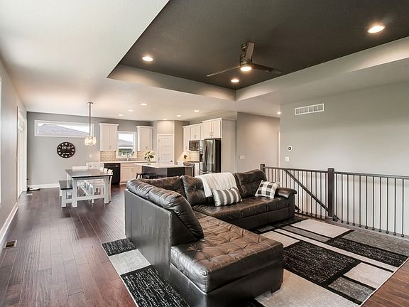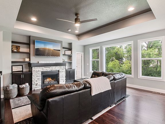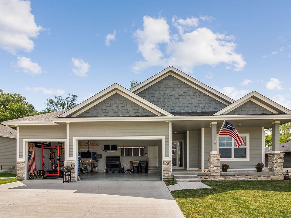 Walk out Ranch backing to trees 100% tax abatement thru 2024 Beautifully built with HardiPlank siding, large covered front porch, covered deck, extended patio, storage shed & "man cave" garage epoxy floors, cabinets, in wall heating, 2 -220V outlets & side wall garage openers for vertical space Custom interior features a main floor split bedroom plan wood flooring throughout main family living areas and a host of windows. Spacious kit quartz counters, black stainless appliances including gas range, walk in pantry, oversized 3 panel slider transom. Open plan family rm has a stone gas fireplace built ins on both sides, dramatic tray ceiling, custom light fixtures, soft close drawers throughout the home. Drop zone off garage separate laundry rm. Nice size Master bdrm, walk in closet, barn doors and master bath featuring large walk around tile shower Huge LL family rm wet bar, in wall surround sound speakers, 4th bedroom and full bath plus tons of storage