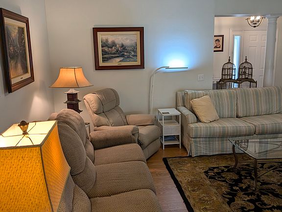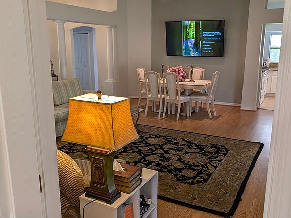This is a FURNISHED month-to-month rental. 3 Bed 2 Bath, sleeps 6, with garage located in Spanish Springs area. Spacious Master bedroom, 2 walk-in closets with Master Bath. Bedroom is large enough to have seating area, king bed, desk with office chair & a love seat. House features an updated eat-in kitchen with white cabinets, granite counter tops, large spacious living room with screened in lanai and indoor laundry room.This location is the best of both worlds. Enjoy all the amenities and activities of the Villages 55+ community with all the shops, restaurants, banks, Hospitals, Medical Offices, and Groceries just 4 minutes away on highway 441.