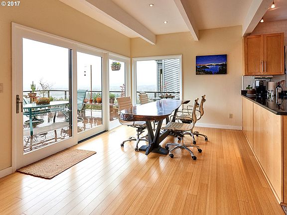 PRICE ADJUSTMENT! Wall-of-windows for expansive views both day and night; see Portland valley, Willamette River, 3 mountains! Breathtaking territorial views from IPE deck/stainless steel railing. Marble tile fireplace surround, newer hardwood floors. Chef kitchen has Wolf gas cooking, granite counters, subway tile, many pull-out shelves. Vaulted upper and lower level with 9' ceilings, views and decks in master bedroom & family room.