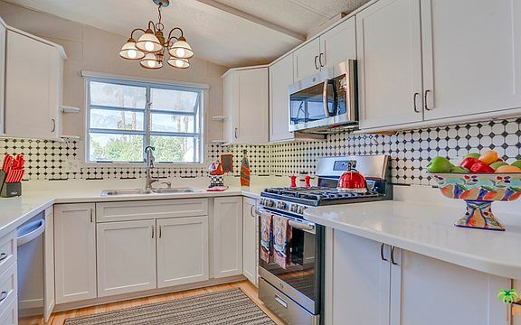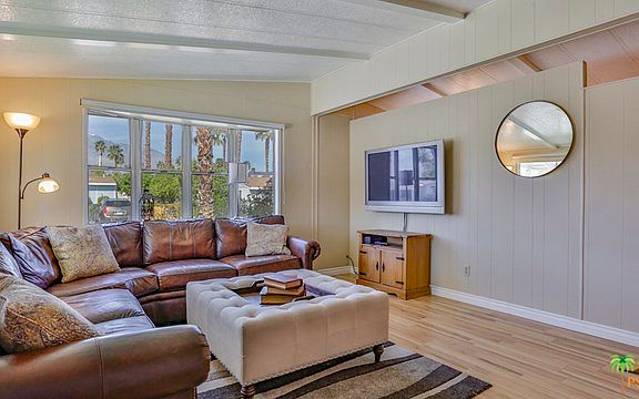 A desert paradise wrapped into one fun package! Carefree living takes on a whole new meaning in this fun 2 bedroom manufactured home in highly sought after & welcoming Desert Sands community. There is so much to love about this home - whether taking in the panoramic mountain views, peaceful Arizona room lounging, releasing the day's stress in the private hot tub, having cocktails with friends - garnishes compliments of your personal orchard - this is one terrific space. Situated on one of the park's premier & more private lots, the house & its 2-car garage set back from the street offering a longer driveway, additional parking (extra guest parking nearby) & space to enjoy the beautiful desertscaped front yard. Nearly new kitchen appliances, newer water heater, a/c & Nest system further add to comfortable & carefree living. The beautiful park-like community offers a gorgeous pool, fitness center, clubhouse & kitchen with ongoing social activities for neighborhood enjoyment.