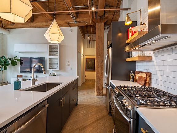 Stunning magazine quality renovation of south facing brick and timber loft in the West Loop! Everything has been redone! Condo features great floor plan with fully enclosed bedroom with windows, large balcony, and tons of windows allowing for great natural light! Gorgeous bathroom with Restoration Hardware vanity, built-in tub, and encaustic cement tile. Kitchen with stainless appliances, quartz countertops, designer lighting fixtures, island with seating area. Other updates include new doors, molding, hardware, organized closets, entertainment center, and so much more. No detail left untouched! In unit laundry, central a/c, and additional storage. Garage parking space available for $25,000. Premier West Loop loft building with 24 hour door staff, exercise club, theater room, party room, business center, yoga studio and guest parking. Fantastic location by restaurants, nightlife, the loop, Mariano's, Whole Foods, CTA, and more!